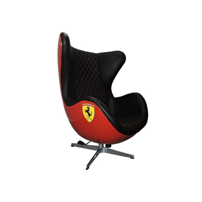Este modelo foi personalizado com as cores e o símbolo da marca de automóveis mais querida pelos apaixonados por velocidade, a Scuderia Ferrari. A fabricante italiana de automóveis de competição, esportivos e de luxo foi criado por Enzo Ferrari em 1939. Justamente pelo seu design diferenciado, que a releitura da poltrona se enquadra em várias facetas do nosso dia, serve como poltrona de leitura, recepção, decora e rende charme e sofisticação ao ambiente.