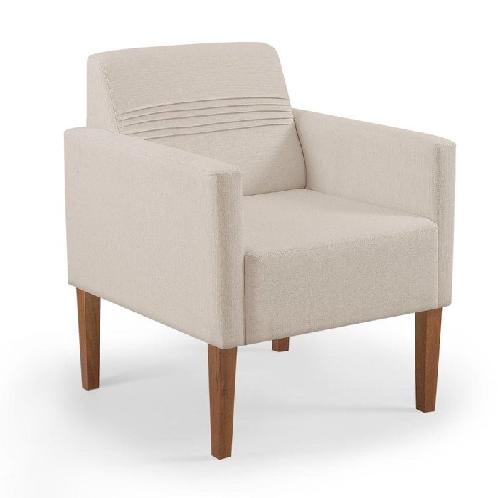 Poltrona Aila Linho Nude e Pés em Madeira Bege