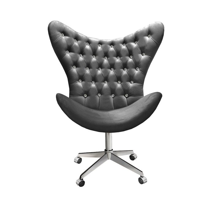 Poltrona Alice Strass Cadeira Egg Capitonê Giratória com Rodízios Recepção, Escritório Cinza grafite