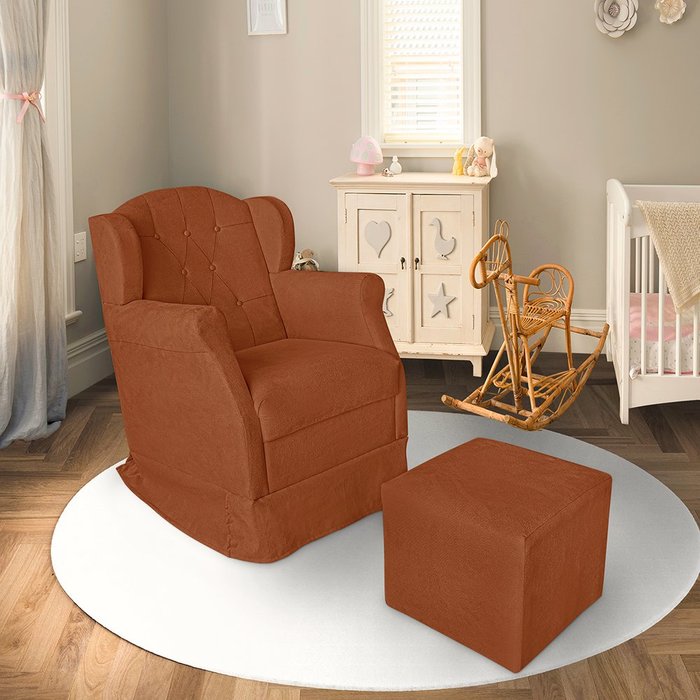 Poltrona Amamentação Balanço Bege + Puff:terra Cota terra cota