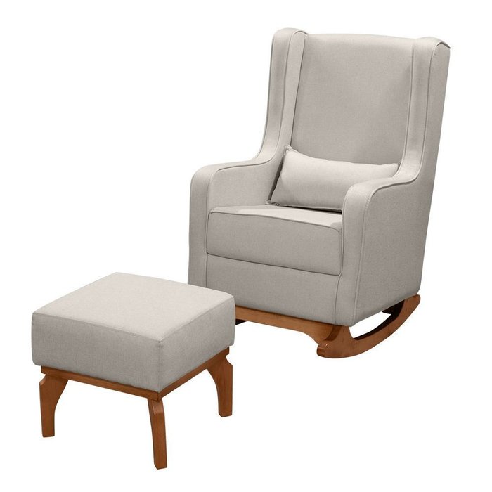 Poltrona Amamentação Balanço Cadeira Descanso Aquila Retrô Puff Linho Bege Bege