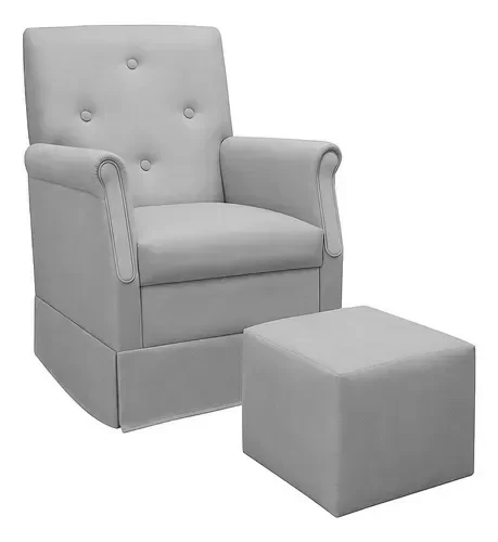 Poltrona Amamentação Balanço e Puff Cinza Cinza