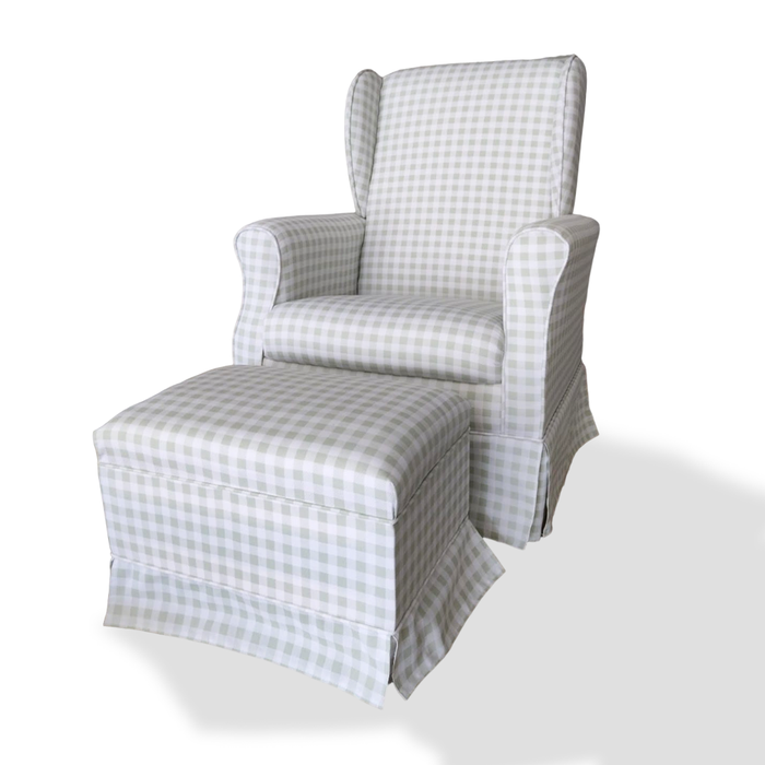 Poltrona Amamentação Balanço e Puff Grande Tecido Linho Jacquard