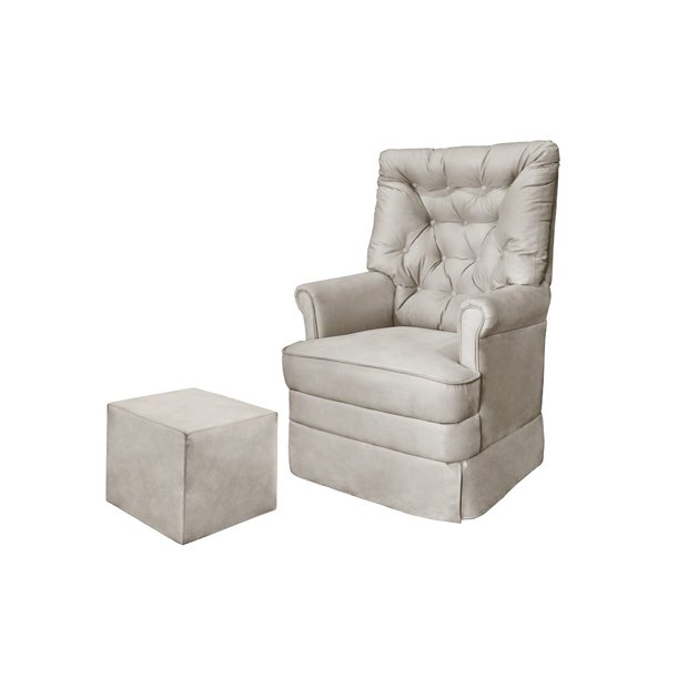 Poltrona Amamentação Balanço + Puff Alana Suede Bege Bege