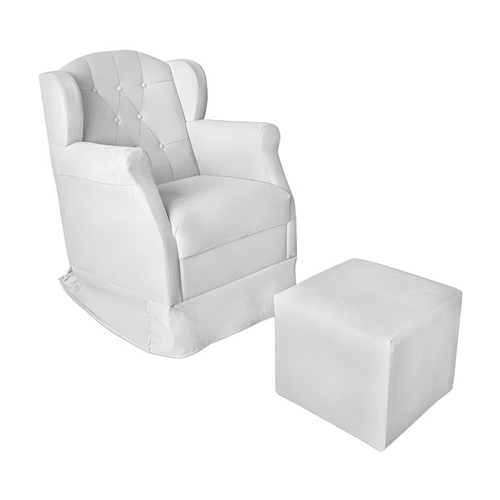 Poltrona Amamentação Cadeira Reforçada Balanço e Puff Lile Corino:branco Branco