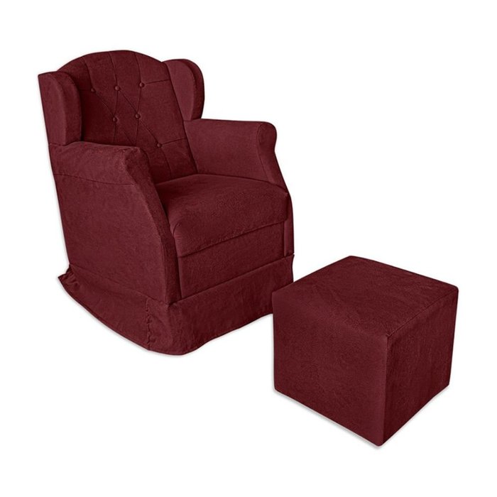 Poltrona Amamentação com Balanço e Puff Luxo Suede Manuela:Vinho Vinho