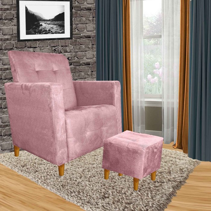 Poltrona Amamentação Gaby Pés Palito + Puff Rosa