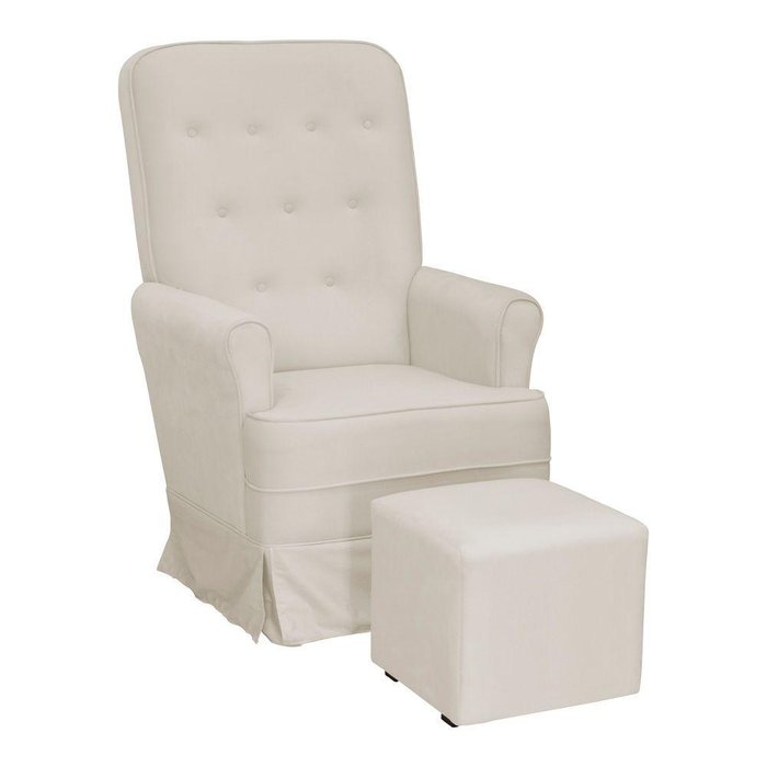 - Puff no mesmo tecido da poltrona. Para tornar a experiência de amamentar ainda melhor, considere utilizar uma almofada de amamentação para apoiar o bebê e uma almofada decorativa de encosto. Fica perfeito! Imagem meramente ilustrativa.