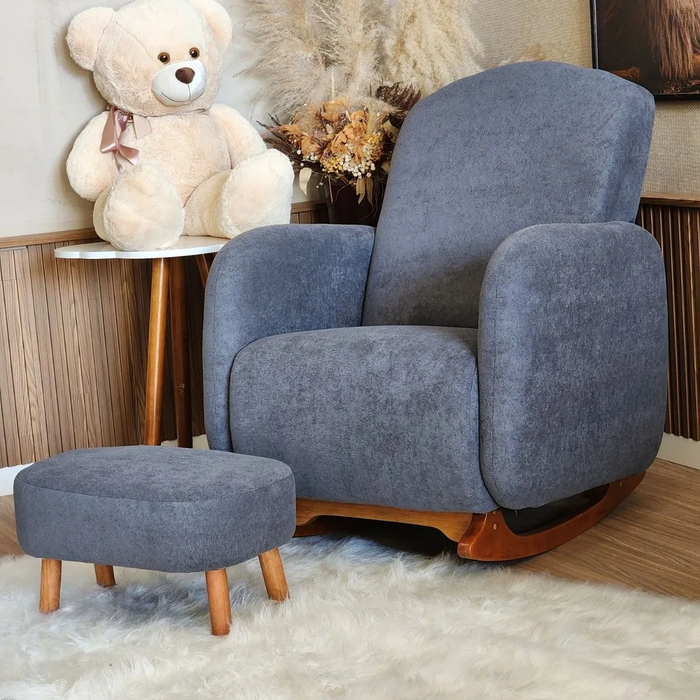 A Poltrona de Amamentação Organite une conforto e estilo com seu design orgânico e base canoa em madeira maciça. Estofada com espuma de alta densidade e manta de plumante, oferece o suporte ideal para a mãe e o bebê, tornando o momento da amamentação mais aconchegante e especial. Um móvel pensado para cuidar de quem cuida.