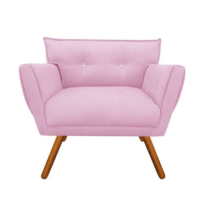 Poltrona Anitta Suede Rosa Bebê com Strass Pés Palito Castanho DMOV Rosa Bebê