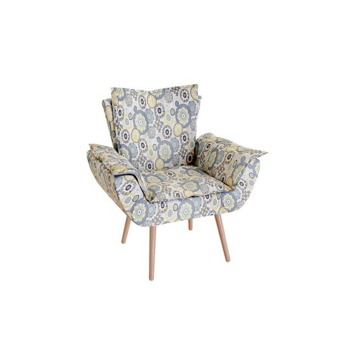 Poltrona Apolo Pés Palito Mel Estampado Floral Azul - Doce Sonho Móveis