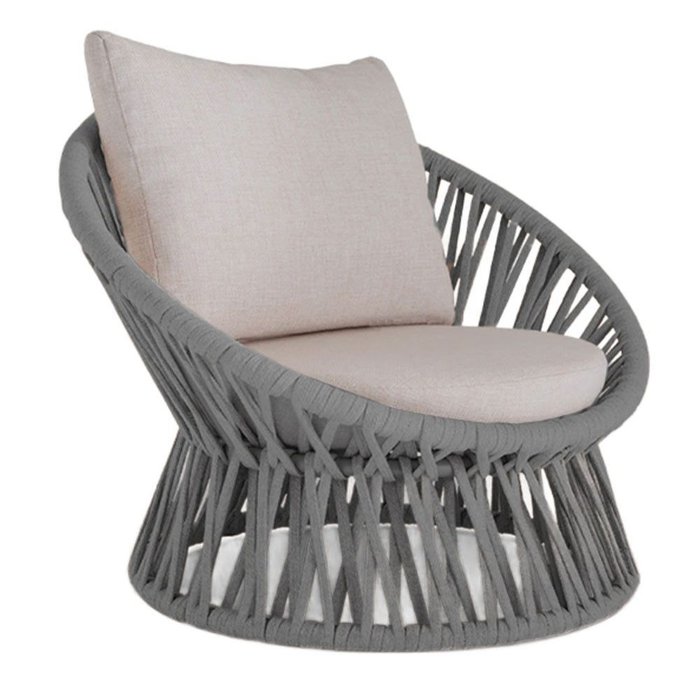 Poltrona Área Externa Monza Alumínio Pintura Corda Náutica Prata