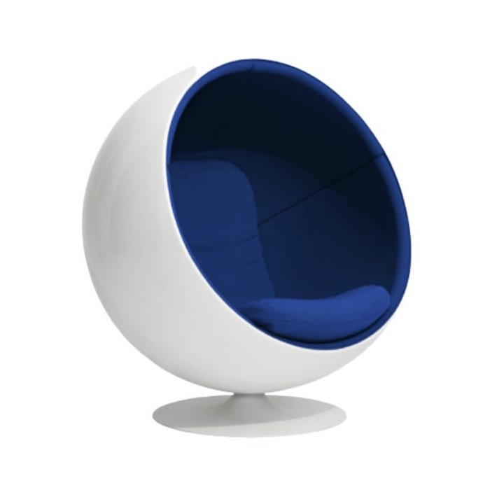 A Poltrona Ball Chair foi criada pelo designer Eero Aarnio, no ano de 1963, projetada inicialmente para ser usada como uma poltrona acolhedora e que preenchesse o espaço, e vamos combinar isso Eero Aarnio conseguiu. Disponível em várias cores e tons, foi sensação no ano de seu lançamento na International Furniture Fair in Cologne, Alemanha, sendo considerada uma das mais notáveis cadeiras da história do século XX. A Ball Chair é considerada e interpretada como uma “sala de dentro de uma sala”, já que seu design, ela projeta uma atmosfera acolhedora e tranquila, protegendo dos ruídos do ambiente e se transforma num espaço mais privado. Sua base giratória permite com que se possa direcionar a visão, assim o usuário pode optar pela melhor posição.