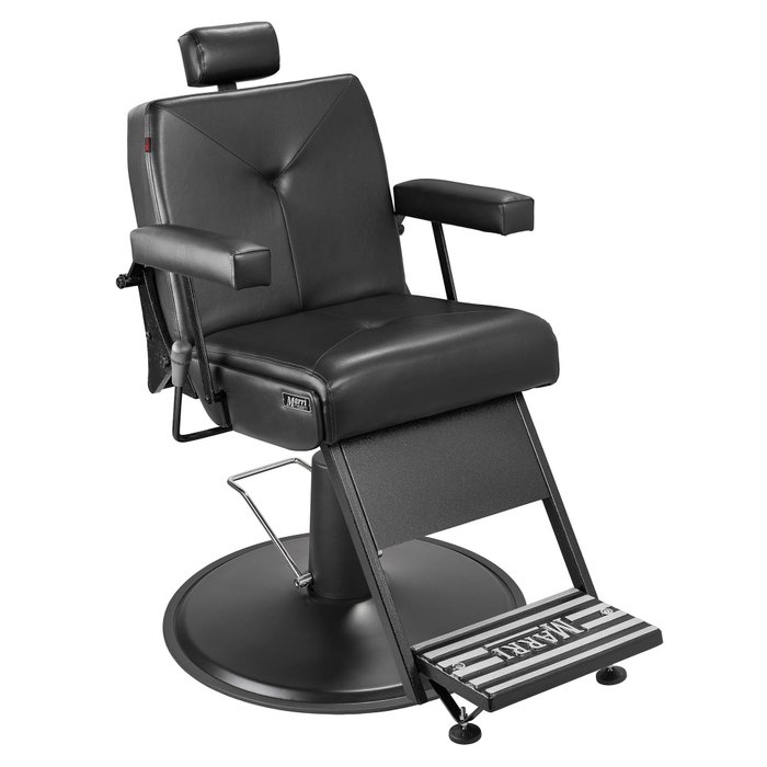 A Cadeira de Barbeiro Milão com um design clássico e autêntico, define o estilo e personalidade da sua barbearia. Para melhor conforto e praticidade na hora de atender seus clientes, a cadeira tem apoio de cabeça com ajuste de altura e apoio para os pés, somados a um sistema fácil de reclínio. Rica em detalhes de acabamento, tem a estrutura em madeira de alta resistência (multilaminada) com capacidade para 140 kg e possui assento e encosto amplos e confortáveis com dupla costura em espuma de alta densidade. Conta com encosto reclinável, bomba hidráulica com elevação de 120mm, cabeçote com ajuste de altura, braço estofado com detalhe cromado, apoio de pés em aço e a sofisticação da base cromada. A Cadeira de Barbeiro Milão Reclinável e Pé Cálice Preto é sem dúvida a escolha certa para a sua barbearia.