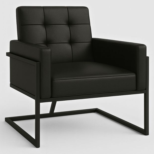 Poltrona Base de Ferro Reforçado para Recepção Clinica Tecido Corano Luxo Estrutura Reforçada Preto