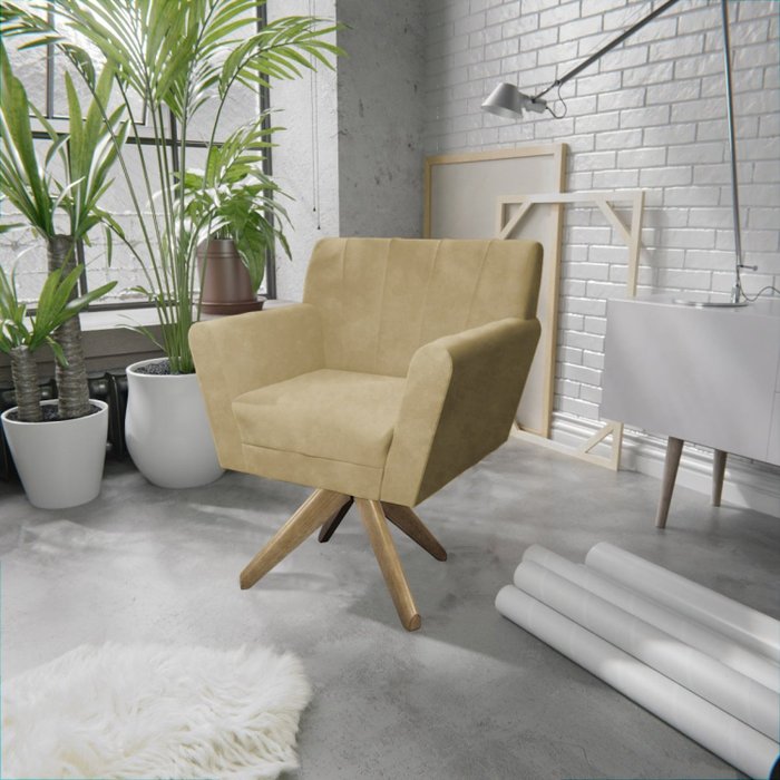 Poltrona Base Giratória de Madeira Lauren Maranata Estofados Bege