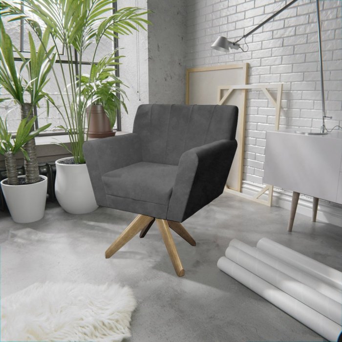 Poltrona Base Giratória de Madeira Lauren Maranata Estofados Cinza
