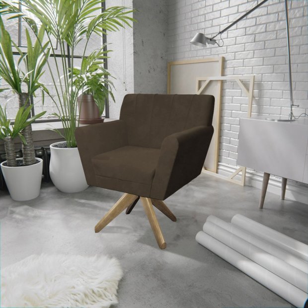 Poltrona Base Giratória de Madeira Lauren Maranata Estofados Marrom