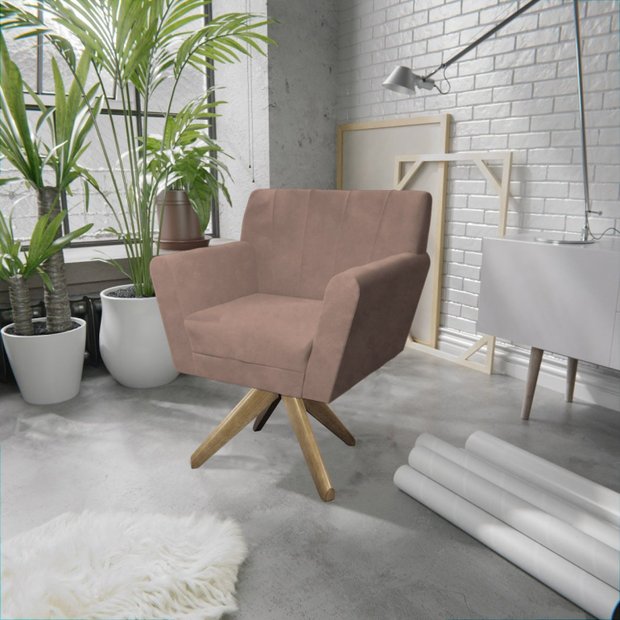 Poltrona Base Giratória de Madeira Lauren Maranata Estofados Rosê