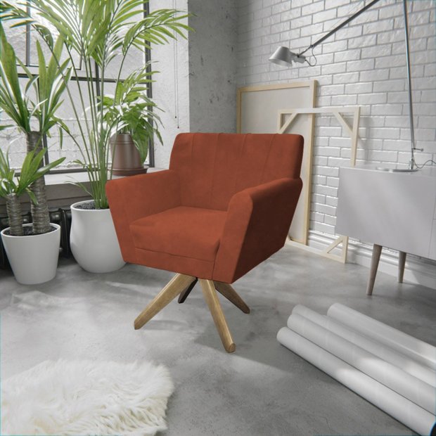 Poltrona Base Giratória de Madeira Lauren Maranata Estofados Terracota