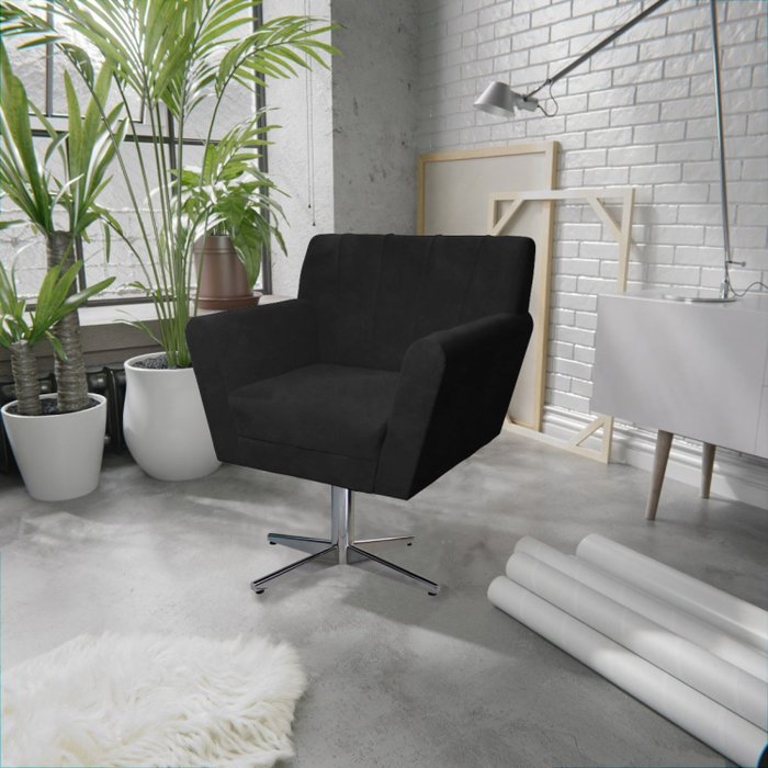 Poltrona Base Giratória de Metal Lauren Maranata Esfofados Preto