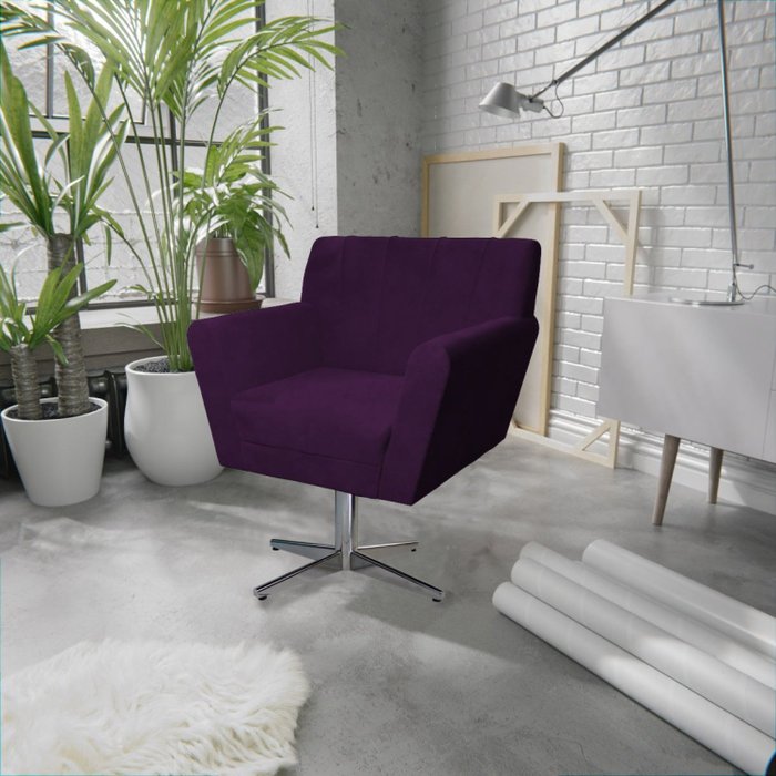 Poltrona Base Giratória de Metal Lauren Maranata Esfofados Roxo