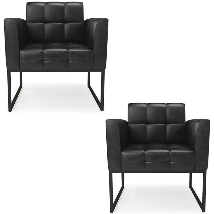 Poltrona Base Industrial Preto Kit 2 Ana Sintético Pu Preto - Ibiza