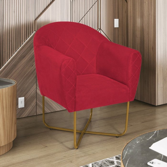 Poltrona Base X Suede Herrera Vermelho