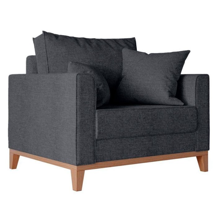 Poltrona Beny com Pés e Base de Madeira Élpis Móveis Linho Grafite