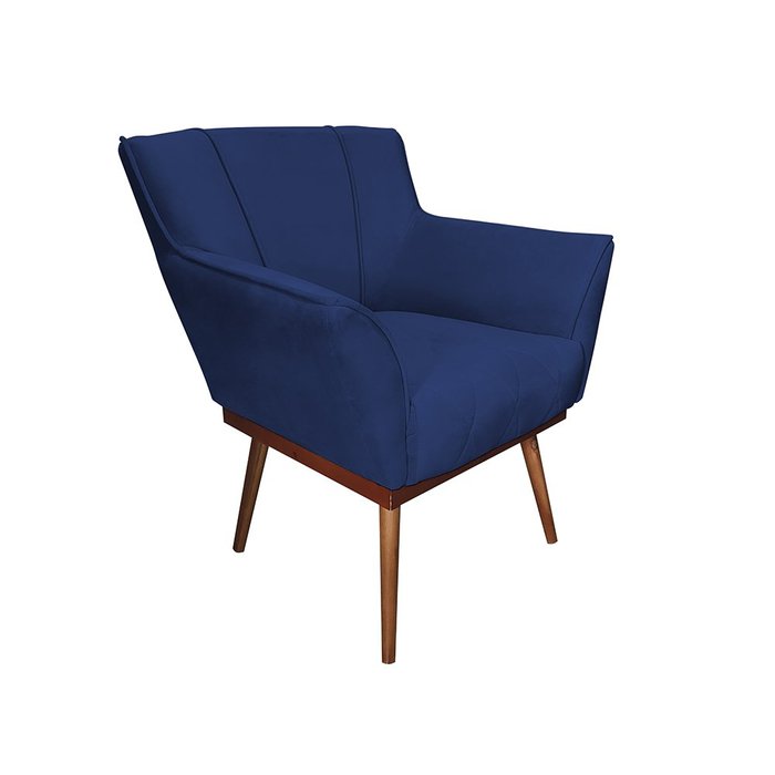 Poltrona Berlim Decorativa Estofada Veludo Azul Marinho Base em Maderia Maciça