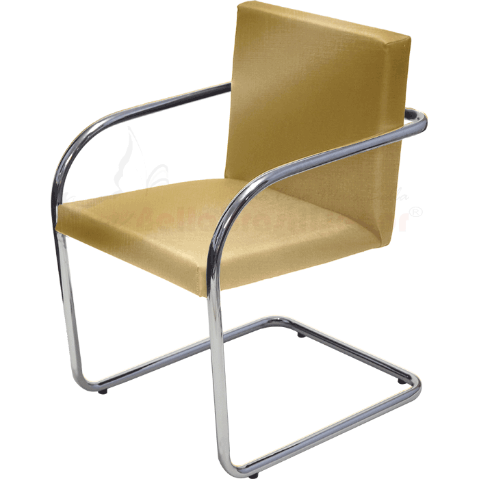 Poltrona BRNO Tubular Dourada - Tecido Facto - Cromado c/ Debrum