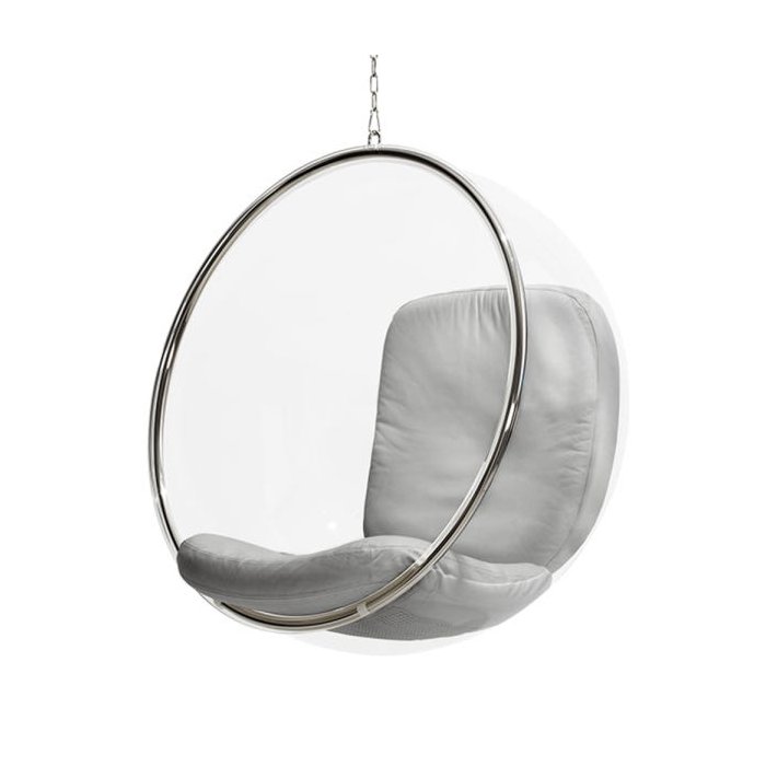 A Poltrona Bubble Chair é uma peça clássica criada em 1962 pelo grande designer dinamarquês Eero Arnio, a Poltrona Bubble Chair é atemporal e requintada se adequando a qualquer tipo de ambiente, clássico ou moderno, é uma peça diferenciada de status e muito glamour. Segundo seu criador Eero Arnio ?Depois que eu criei a cadeira Ball Chair eu queria ter luz dentro dela e então eu tive a ideia de uma bola transparente onde vem luz de todas as direções, o único material adequado foi o acrílico, que é aquecido e soprado na forma como uma bolha de sabão. ?