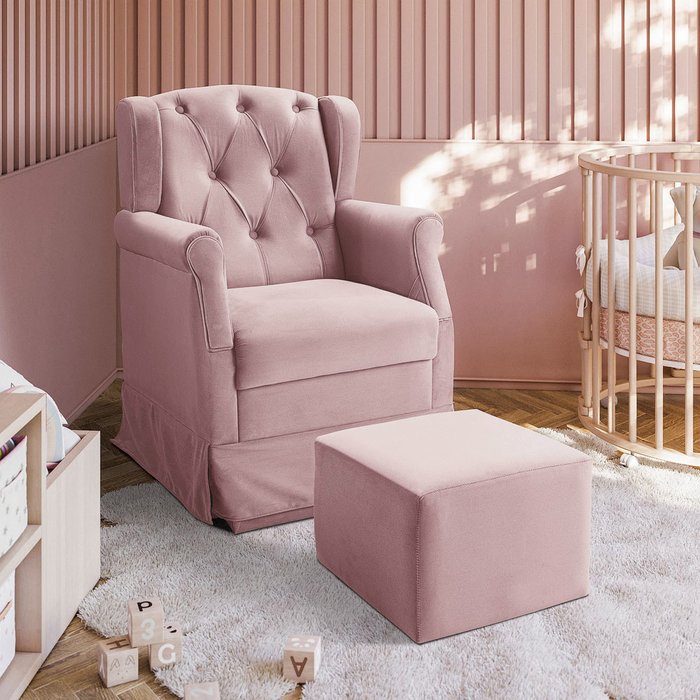 Poltrona Cadeira de Amamentação Balanço + Puff Ternura Material Sintético - Star Confort Corano Rosa