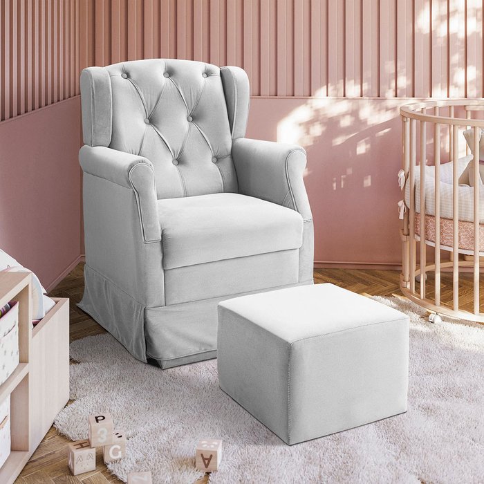 Feita com matéria-prima de alta qualidade a poltrona possui estofado revestido por tecido de toque suave que proporciona aconchego para os momentos de amamentação.