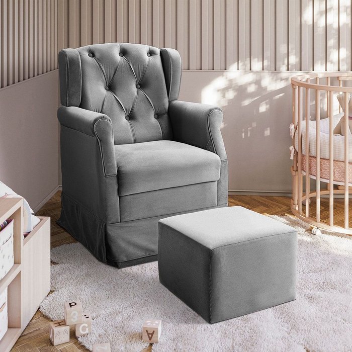 Poltrona Cadeira de Amamentação Balanço + Puff Ternura Veludo - Star Confort Cinza Chumbo Veludo 1704