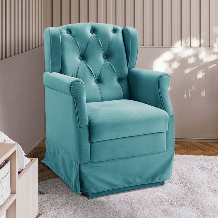 Poltrona Cadeira de Amamentação Balanço Ternura Veludo Turquesa Ciano- Speciale Home Veludo Turquesa Ciano