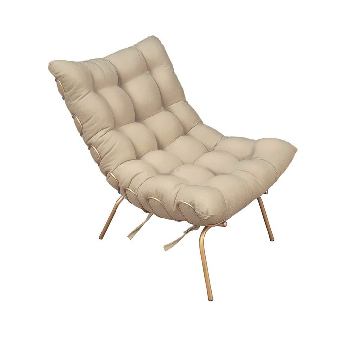 Poltrona Cadeira Decorativa Costela de Ferro Dora Bela Móveis LINHA 2022 Bege Linho 1006 Bege