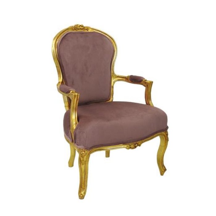 Poltrona Cadeira Luiz Xv Tecido Nobre Rose Madeira Dourada Alta Decoração Rose