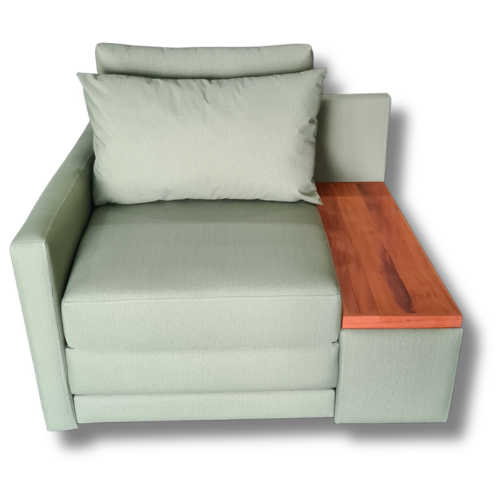 Poltrona Cama | com Tampo Lateral de Madeira Lado Direito | Acquablock Sálvia