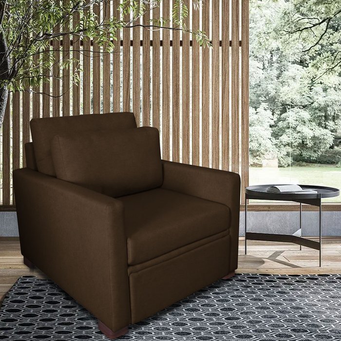 Poltrona Cama Meca_Mm Que Se Transforma em Sofá Cama Solteiro Resistente e Confortável em Sarja Algo Marrom