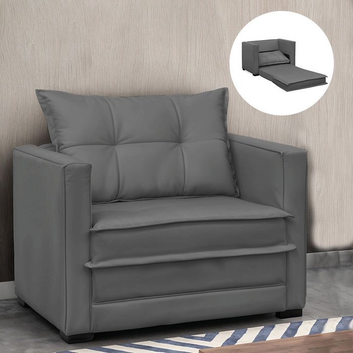 Diferenciais: Poltrona que vira cama; Acompanha almofada solta, com enchimento de fibra siliconada.