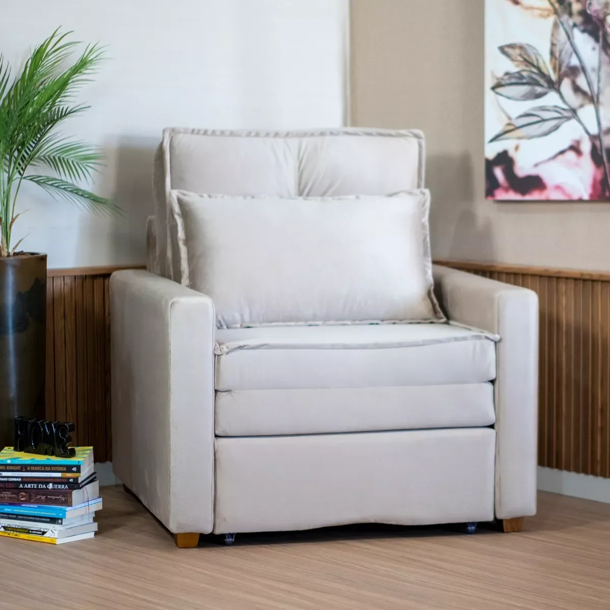 A Poltrona Cama Sleep tem como intenção proporcionar muito conforto e beleza, mas além disso ela pode proporcionar muita praticidade porque pode ser utilizada como poltrona decorativa como também como uma cama de solteiro para pessoas que possuem pequenos ambientes e tem a necessidade te tornar o seu ambiente multifuncional. Olha essa novidade, não perca tempo e adquira já a sua!