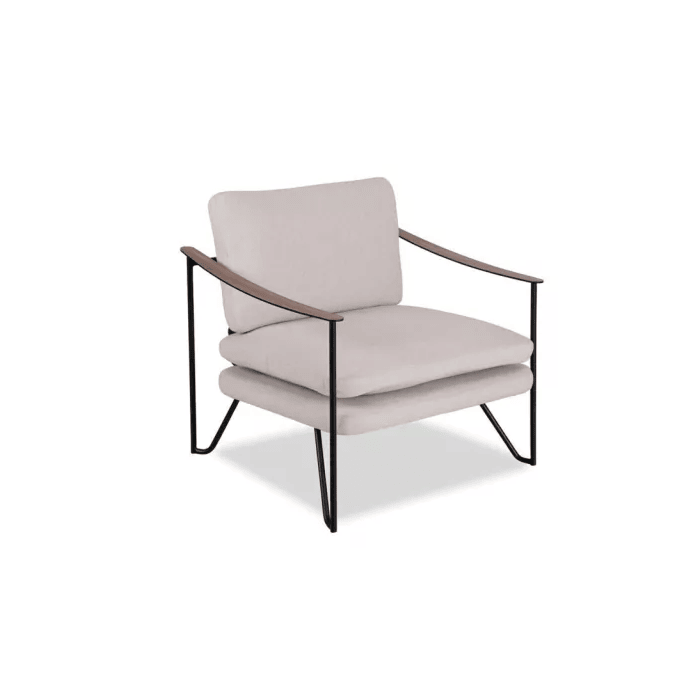 O assento e encosto estofados proporcionam uma experiência de uso incrível, ideal para longos momentos de relaxamento. Os pés duplos em ângulo de 45 graus não só oferecem suporte, mas também um design moderno que valoriza o ambiente.