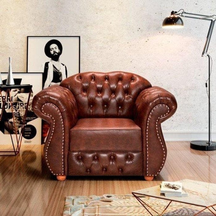 Poltrona Chesterfield Capitonê Couro Nozes Ecológico - Fm