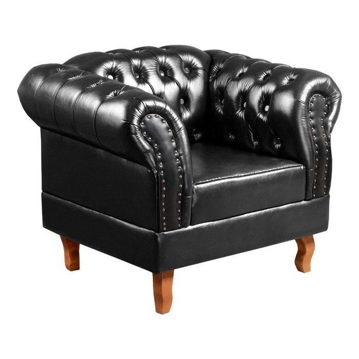 Poltrona Chesterfield Duque Dom Pedro Capitonê - Couríssimo Preto Preto