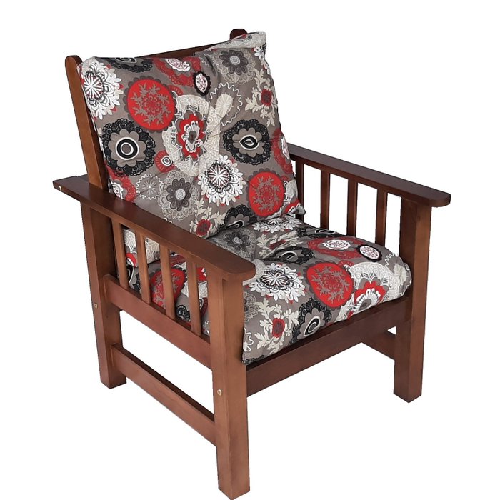 Poltrona Colonial Cancún De Madeira C/ Almofadas de Jacquard e Poliéster Estampa MANDALA
