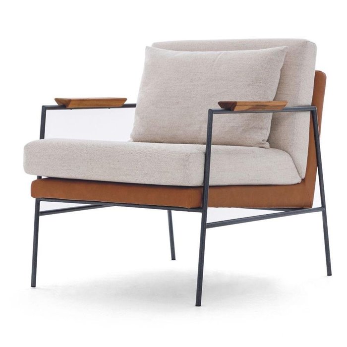 Poltrona com Braços Herval Mh-3807 Composê Estofado Bege C Assento Marrom a Base Metalica Grafite