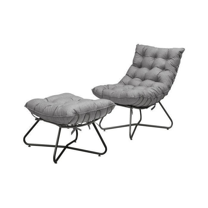 Poltrona com Puff Costela Aramada EVA Preta- Linho Cinza