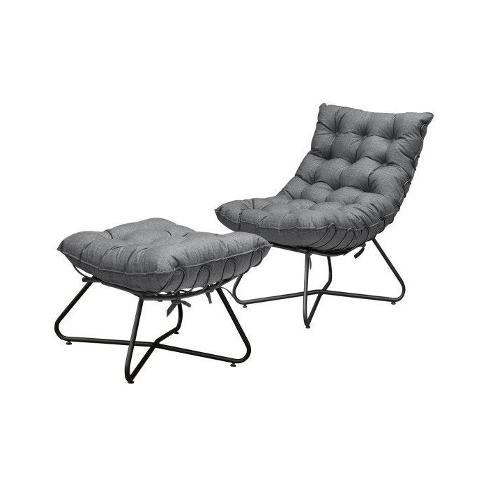 Poltrona com Puff Costela Aramada EVA Preta- Linho Grafite