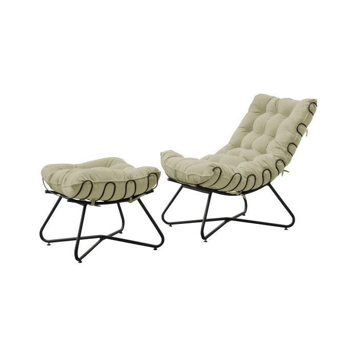 Poltrona com Puff Costela Aramada EVA Preta- Veludo Bege